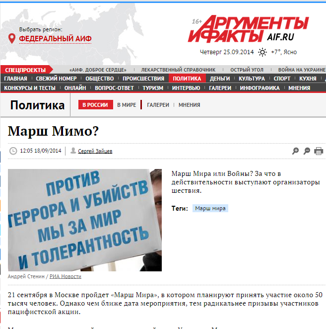 - Но вот, например, о якобы отмене Марша мира или о выборах в Мосгордуму у вас выходил без каких-либо пометок в обычной рубрике.