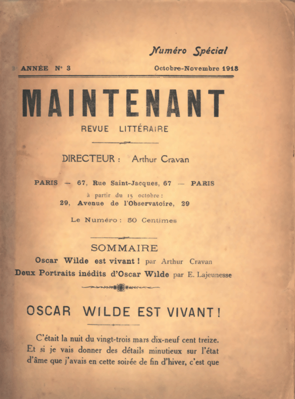 – С этим связана замечательная история. В третьем выпуске журнала Краван пишет рассказ под названием "Оскар Уайльд жив". Журнал выходит в 1913 году, при этом достоверно известно, что Уайльд умер в 1900 году. Надо сказать, что весь третий номер посвящен Оскару Уайльду. Краван подробнейшим образом описывает внешность Уайльда, он рассказывает о том, что Уайльд пришел к нему в гости, что они с ним побеседовали, что он не только не умирал, но жив-живехонек и продолжает писать и путешествовать, скрываясь от всего мира. Словом, Краван пишет этот текст и утверждает, что встреча с Оскаром Уайльдом была совершенно реальной.