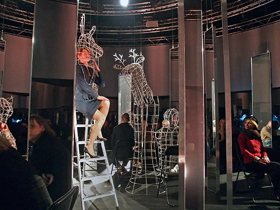 — Коротко говоря, это такой зеркальный лабиринт, внутри которого находятся зрители. Мир, создаваемый Сорокиным, — он же постмодернистский, это мир бесконечного цитирования, бесконечного отражения. Важно было создать пространство, в котором каждый зритель, по сути дела, видит свой спектакль. Тут нет «правильной» точки просмотра: с разных зрительских мест все выглядит по-разному, и все эти зрелища совершенно равноправны. Это, кстати, вполне соответствует сегодняшнему человеческому сознанию, напрочь лишенному определенной векторальности. Измеряемое зависит от измеряющего.