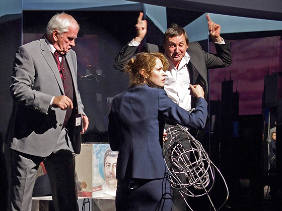 — Разумеется, актеры не одинаково сближались с текстом, у кого-то возникало определенное сопротивление. Но такие сюжеты в театрах, берущихся за постановку современных авторов, происходят повсеместно и неизбежно. А заслуженных вы мне не обижайте: вот Семен Семенович Сытник буквально на первой же репетиции сказал, что очень рад, потому что ему интересно играть именно про современного человека. У нас сложился на спектакле великолепный актерский коллектив: мы здорово общались, обсуждали разные вопросы, иногда это просто выглядело как философский семинар. В какие дебри мы только не уходили — от теории относительности до театроведения. Наша «Теллурия» — продукт совместного интеллектуального штурма. И каждый актер у нас играет сразу несколько ролей.