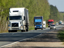 За перемещением тяжелых грузовиков будут следить с помощью спутниковой системы ГЛОНАСС. На грузовики, не оснащенные специальными датчиками, будет накладываться штраф в размере от 5 тыс. руб. до 1 млн руб. За проезд по муниципальным и региональным дорогам "тяжеловесам" платить не придется.