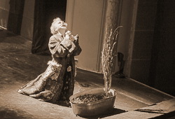 Странно слышать о том, что при Людовике ХIV и Мольере люди одевались несколько иначе. Конечно же, спектакль «Скупой», премьерный показ которого состоялся 25 сентября 2014 года в Большом зале псковского драмтетра, - не реконструкция спектакля ХVII века (первая постановка «Скупого» тоже пришлась на сентябрь - на 9 сентября 1668 года, в парижском театре Пале-Рояль в роли Гарпагона выступил сам Поклен-Мольер). Однако безудержного осовременивания в Пскове тоже не произошло. Мегафон, велосипед, телефон и тому подобные признаки нынешней цивилизации вообще в этом спектакле не обязательны (за исключением, разве что, холодильника).