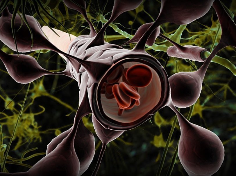 Мешает этому гемато-энцефалический барьер. В процессе эволюции объем головного мозга рос, и ему требовалось все более интенсивное кровоснабжение. У человека масса мозга составляет всего 2% от массы тела, но при этом мозг потребляет 20% от всего кислорода, потребляемого организмом. Собственных запасов питательных веществ у мозга тоже почти нет. При этом очень важно поддерживать оптимальные для работы мозга условия вроде концентрации электролитов, pH и других веществ, не пропускать активные вещества вроде нейромедиаторов, циркулирующих в крови, не говоря уже о патогенах или клетках иммунной системы. Этим и занят гемато-энцефалический барьер: он пропускает из крови в мозг только необходимое и препятствует проникновению всего остального.