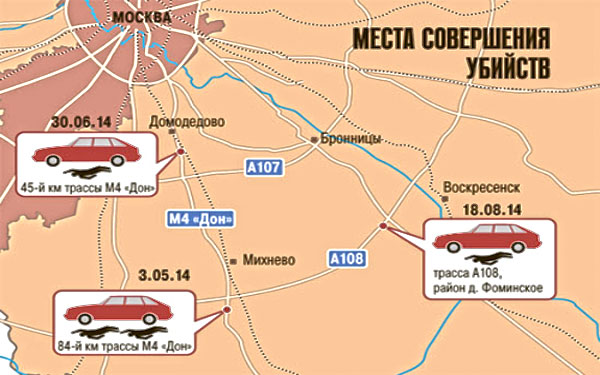 Смотрите также: Читатели «Полит.ру» сочли убийства водителей в Подмосковье делом рук маньяков МВД опровергло задержание подозреваемых в убийствах на подмосковных трассах Жириновский обвинил СБУ в убийствах на подмосковных трассах В Подмосковье ищут убивающих водителей «дорожных маньяков»