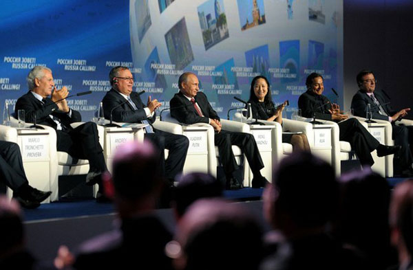 Вообще мало кого могли бы удивить слова Германа Грефа, если бы они были произнесены не на пленарной сессии, а в кулуарах того же форума — постоянные аплодисменты, которыми прерывались слова главы Сбербанка, говорили о том, что многие в зале думают примерно о том же и примерно так же.