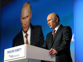Инвестиционный форум «Россия зовёт!» Фото: kremlin.ru В первых числах октября «ВТБ Капитал» провел в Москве шестой Инвестиционный форум «Россия зовет!». Все самое интересное произошло в четверг, 2 октября. Самое статусное выступление состоялось после обеда в Московском офисе — Владимир Путин рассказал собравшимся предпринимателям о политике российского руководства. Но самые громкие слова, безусловно, утром в четверг произнес президент Сбербанка Герман Греф.