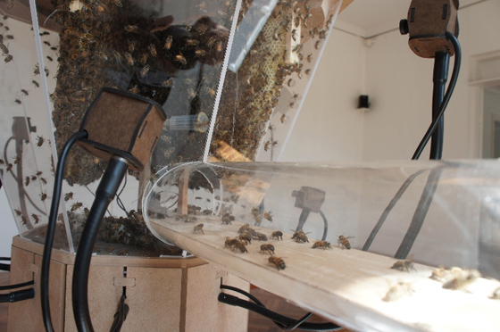 — Мы пытаемся, используя язык искусства, поднять проблему исчезновения вымирающего вида насекомых — медоносных пчел, которые жизненно необходимы человеку. Для этого мы придумали прозрачный улей и запустили туда пчел, чтобы можно было наблюдать за тем, как они работают, общаются друг с другом, реагируют на внешние явления. Конечно, всем известно, что улей — это высокоорганизованное сообщество, где есть свои вожаки, королевы, кормилицы, рабочие. Производство меда напоминает виртуозный танец, который возникает за пределами улья и продолжается внутри. Абстрактно об этом знают все, но кто мог до сих пор наблюдать за этим? Наш прозрачный улей делает такое наблюдение общим. Я вместе с моими коллегами и соавторами идеи Сирилом Генри и Дмитрием Морозовым хочу пойти еще дальше: с помощью специальных кормушек и паяльных станций мы создадим специальное пространство, чтобы обучать пчел реагировать на определенные коды и цвета.