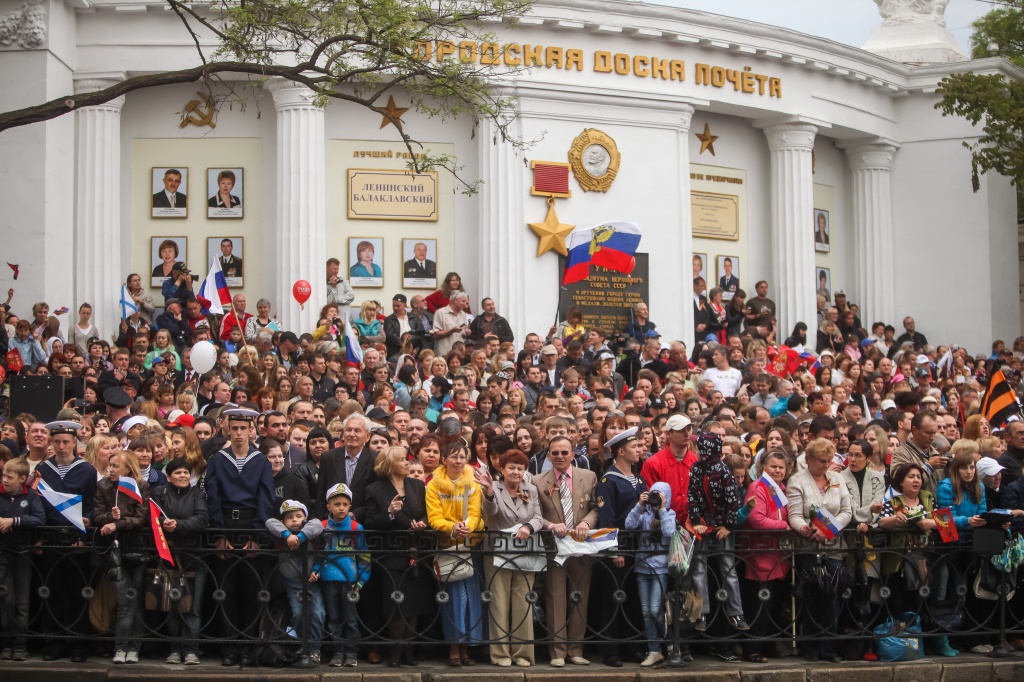 Севастополь. Зрители на параде, посвященном Дню Победы. 9 мая 2014 г.