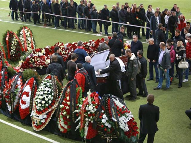 Во вторник утром в спартаковском манеже в Сокольниках состоялась гражданская панихида по спортсмену. Траурную церемонию посетили около 15 тысяч человек, в частности, руководители российского футбола, известные игроки и спортивные деятели.