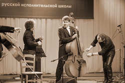 Пока Дмитрий Севастьянов неумолимо подбирался к струнам контрабаса, Денис Мацуев завладел барабанными палочками, произвёл по барабану несколько ударов, а потом тоже переместился к контрабасу.