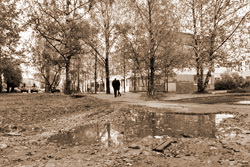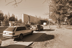 Мы договорились встретиться с Сергеем Михайловичем на остановке «Архив», чтобы проделать тот же маршрут, что и местные жители, такие как я и мои соседи, возвращаясь с работы домой. А выглядит он так: идти с остановки 11-го автобуса на улицу, например, Алтаева или Инженерную приходится через территорию 22-й школы, поскольку дороги вдоль ныне отсутствующей (да и существовавшей ли когда-то?) ограды представляют собой глино-песчаную смесь, то ли наросшую поверх асфальта, то ли выплывшую из-под него.