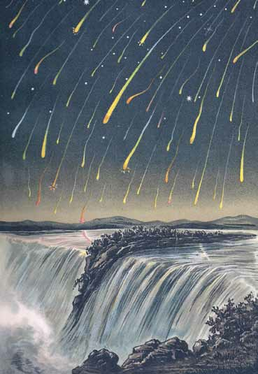 6. В результате кометной активности на орбите кометы остается изрядное количество небольших небесных тел — метеорных частиц. Если орбита кометы достаточно близко подходит к орбите Земли, то может наблюдаться метеорный поток — множество метеоров («падающих звезд»), видимых за короткий промежуток времени. Во время сильных метеорных дождей можно наблюдать тысячи метеоров в час.