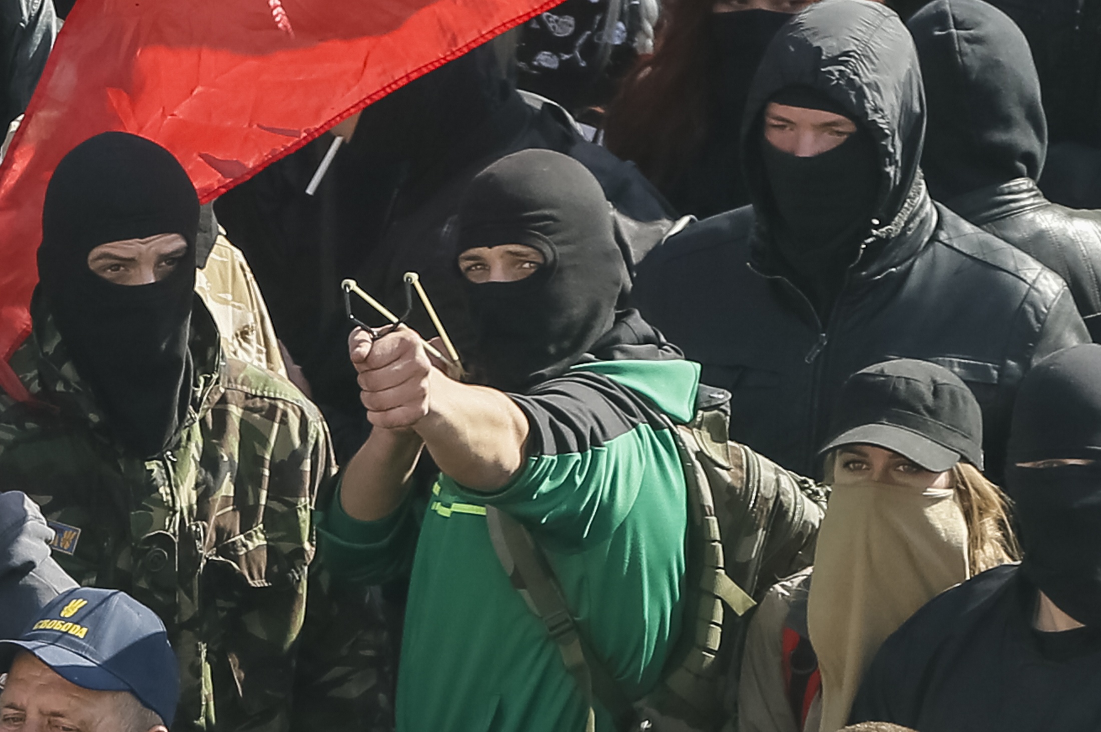 Столкновения у Рады произошли во время националистической акции объединения "Свобода": около 200 человек в балаклавах и с флагами "Правого сектора" попытались прорвать милицейский кордон и штурмовать здание парламента.