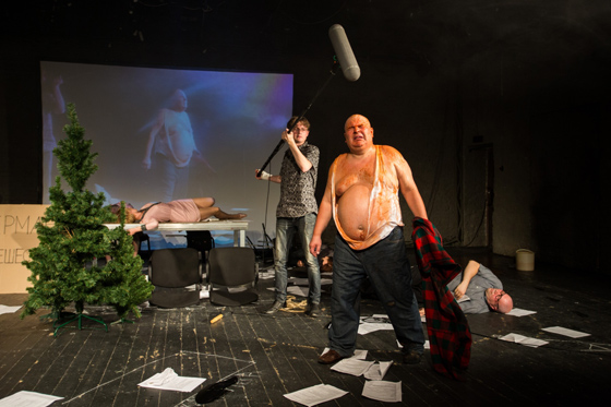 — В качестве ключа к постановке вы используете прием «кино в театре». То есть ваши герои снимают фильм об этой вот истории в автобусе. Почему вы избрали именно такое решение?