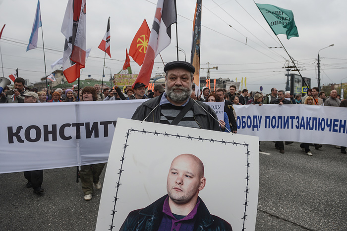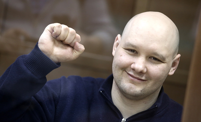 За три часа до оглашения территорию вокруг суда заняли автобусы полиции, а внутри здания на каждом этаже расположились сотрудники ОМОНа с защитными шлемами «Джетта». Желающих поддержать подсудимого — всего около 100 человек — с трудом распределили на два зала, в одном из которых была организована трансляция.