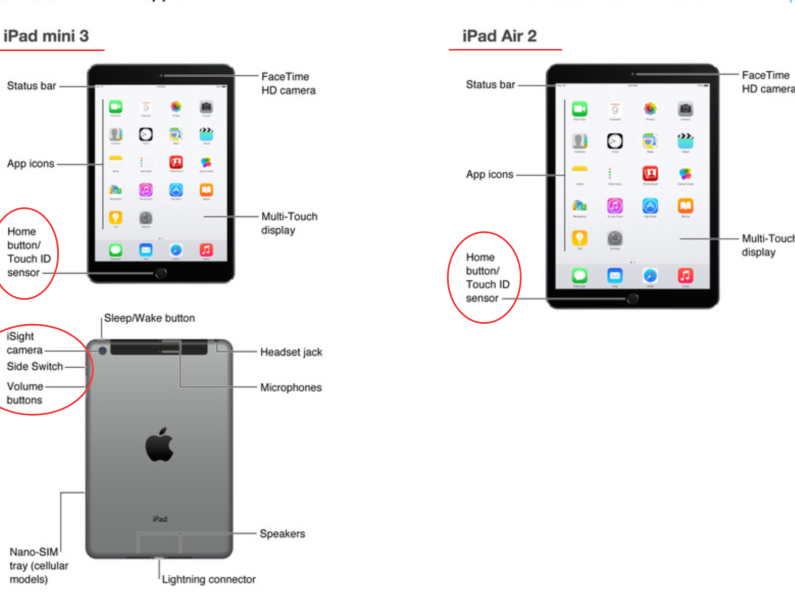 В техноблоге приводятся скриншоты страниц из руководства пользователя новых устройств. По информации 9to5Maс, данные скриншоты появились в онлайн-магазине Apple iTunes и были вскоре удалены. Однако многие успели отметить, что оба новых планшетника внешне очень похожи на предыдущие модели и снабжены сенсором отпечатков пальцев Touch ID, который имеется у модели iPhone 5S. Кроме того, судя по скриншотам, у iPad Air 2 появится режим серийной съемки Burst Mode, которым также может похвастаться iPhone 5S.