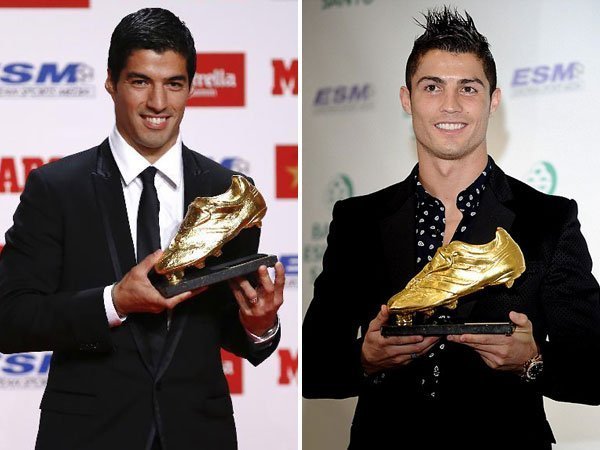 Нападающий «Барселоны» Луис Суарес и форвард мадридского «Реала» Криштиану Роналду разделили «Золотую бутсу» сезона-2013/14, сообщает Reuters. Эта награда присуждается лучшему бомбардиру чемпионатов стран, входящих в Союз европейских футбольных ассоциаций (УЕФА). Суарес, забивший 31 гол за «Ливерпуль» в чемпионате Англии в прошлом сезоне, 15 октября получил награду из рук бывшего тренера английской команды Кенни Далглиша. Церемония награждения прошла в Antigua Fabrica Damm в Барселоне. Летом Суарес покинул «Ливерпуль» и перебрался в «Барселону», где пока не играет, так как он дисквалифицирован до 25 октября за укус итальянского защитника Джорджо Кьеллини на чемпионате мира.