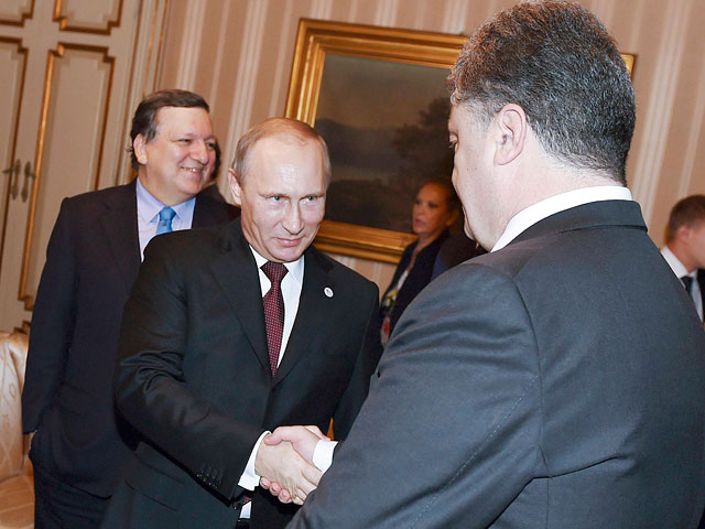 Глава Украины после разговора с японским премьером Синдзо Абэ дождался окончания встречи президента РФ с канцлером Австрии Вернером Файманом, после чего проследовал в зал к российскому президенту, сообщает "Интерфакс".