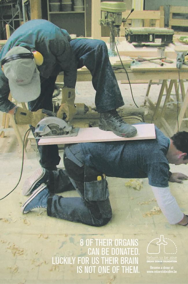 Бельгийское рекламное агентство Duval Guillaume подготовило видео и постеры для кампании в поддержку донорства от некоммерческой организации Re-born To Be Alive. В них обыгрывается человеческая глупость, способная приводить к фатальным результатам.