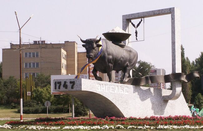 Фото: Михаил Ревнивцев / Викисклад Памятник гербу Энгельсского муниципального района