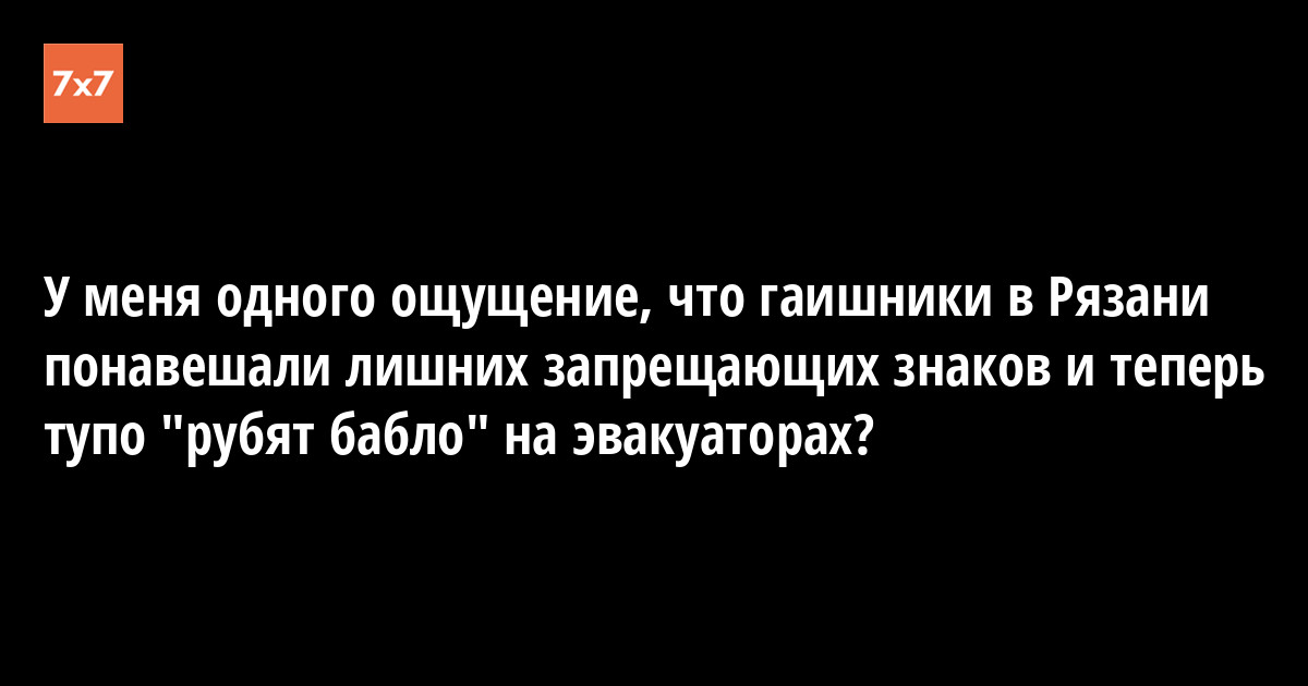 У меня одного ощущение, что гаишники в Рязани понавешали лишних запрещающих знаков и теперь тупо "рубят бабло" на эвакуаторах?