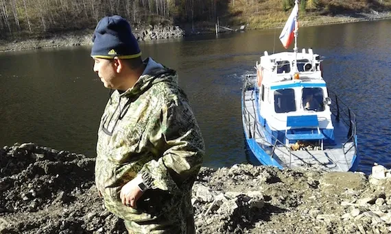 Примерно через 15 км за нами пристраивается моторная лодка с двумя мужиками. Держатся на расстоянии. Мобильная связь здесь не берет, Букин заметно напрягается и подает сигнал капитану. Но тревога оказалась ложной: на лодке находились золотодобытчики. Обгоняя наш катер, старатели угрюмо косятся в мою сторону: