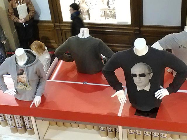 Летом в прессе широко освещалась продажа в ГУМе футболок с изображением Путина. В июне магазин продавал коллекцию футболок с Путиным, созданную молодежным брендом Anyavanya. Тогда за сутки было продано более пяти тысяч футболок по 1200 рублей за штуку, а всю выручку ГУМ передал на лечение младенца из Славянска с диагнозом "спинальная амиотрофия".