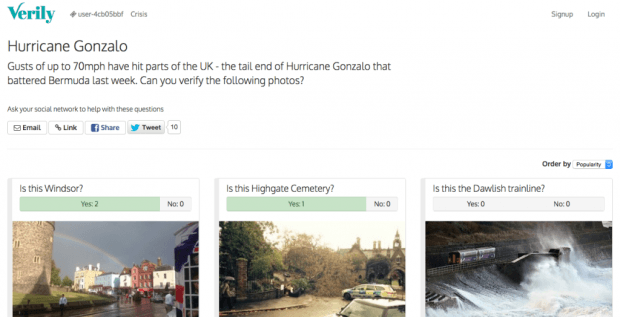 Онлайн-платформа Verily позволяет с помощью краудсорсинга совершать быструю проверку информации во время различных катастроф, чрезвычайных ситуаций или природных катаклизмов. Также сервис позволяет использовать знания участников для определения объектов на фотографиях.