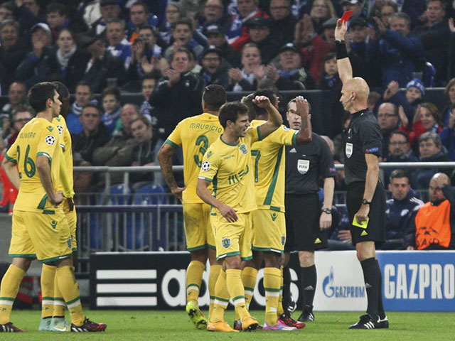 Карасев на 33-й минуте удалил игрока "Спортинга" Маурисио, а в компенсированное ко второму тайму время назначил пенальти в ворота лиссабонцев, благодаря которому "Шальке" вырвал победу. В эпизоде с пенальти главный арбитр с подсказки своего помощника Виталия Мешкова, находящегося за воротами, зафиксировал у защитника гостей Хонатана Сильвы игру рукой в штрафной площади (ВИДЕО).