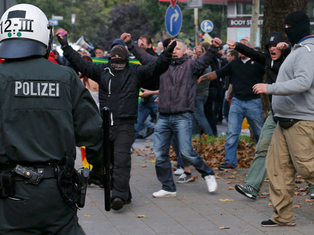 В немецком городе Кельн демонстрация неонацистов переросла в масштабные столкновения с салафитами - сторонниками консервативного ислама. Полиция применила водометы и слезоточивый газ, число пострадавших и задержанных уточняется, передает АР.