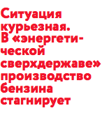 Ситуация курьезная. В «энергетической сверхдержаве» производство бензина стагнирует. За первые 9 месяцев 2014-го оно даже сократилось на 1,3 %.