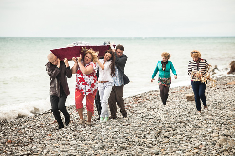 Жанр зомби-хоррора (да и хоррора вообще) никак не приживается в России, и это, видимо, свойство самой русской почвы, а не режиссеров и сценаристов. Почему — а черт его знает, но, видимо, потому, что несмерть — это константа русской жизни. В России ничто не умирает до конца, но, потеряв жизненный огонь, все тащится и тащится по дороге истории — а то и участвует в собраниях, свидетельствует, выходит на митинги (я помню, как в 90-х гремящие кастрюлями пенсионеры казались нам, политически несознательным подросткам, натуральными героями зомби-фильма, которые тянут руки к живым, — а что уж говорить о Ленине, Брежневе, Сталине, доме Романовых, Столыпине и прочих политических кадаврах, которых регулярно гальванизируют, прихорашивают и запускают в медийное пространство). В этом смысле избранный Крыжовниковым жанр «приключения трупа» как нельзя больше подходит для метафоры нашей экзистенции. Чувство обреченности и предопределенности катастрофы, постоянно охватывающее россиянина, очень напоминает фатализм вагнеровских опер, герои которых часто тоже уже обречены — то есть фактически мертвы, потеряны для жизни при появлении на сцене. Но от формального момента физической смерти их отделяют часы, которые кажутся вечностью. Впрочем, русский обыватель может уютно и нестрашно обустроиться и в этой ледяной вечности. Так что похоронная процессия, несущая недовольного и неупокоившегося Борис-Иваныча по лунному пейзажу пляжной зоны, становится, с одной стороны, веселой аллюзией на Феллини, а с другой — готовой политической карикатурой. Тоже, в общем, жанр нестрашный.