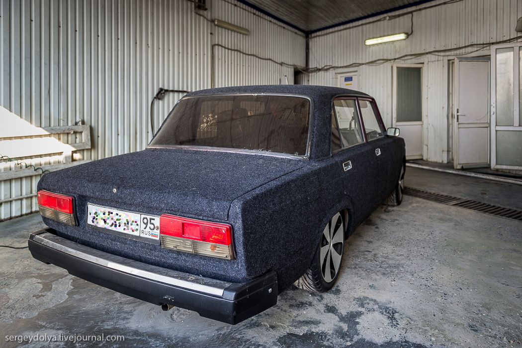 Блогер Сергей Доля опубликовал фотографию «коврокара», который он встретил в Чечне. Местный житель наклеил на внешнюю сторону ВАЗ 2107 ковер, используя клей в аэрозольном баллончике.