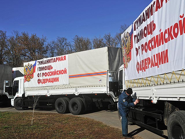 Четвертый гумконвой выехал из подмосковного Ногинска 28 октября. Первые три колонны доставили в Донецк и Луганск в общей сложности 6000 тонн груза - в том числе продукты, медикаменты, генераторы, теплые вещи, питьевую бутилированную воду.