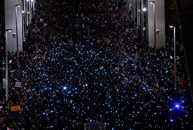 Всего две недели назад были местные выборы: партия Орбана выиграла посты мэров в 21 из 23 крупнейших городов Венгрии, включая Будапешт. А на втором месте был еще более национал-популистичный Йоббик. Вчера, уже после начала протестов против налога на интернет, опубликованные соцопросы показали, что рейтинг правящей партии в Венгрии еще вырос на 6 пунктов, до 37%.