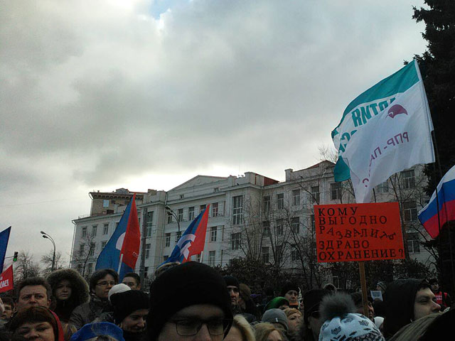 С трибуны митинга заявляли, что саму реформу считают перераспределением денег, которое к тому же поможет освободить от медучреждений дорогую землю в центре Москвы. "Расходы на медицину сокращены на 34%, зато проводят Олимпиады, поднимают зарплаты силовикам, есть деньги на войну", - цитируют выступления очевидцы. Участники требуют отставки главы департамента здравоохранения Москвы Леонида Печатникова.
