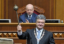 "Те широкие полномочия, которые предусматривал закон, мы готовы предоставлять только легитимно избранным органам местного самоуправления, - пояснил Порошенко. - А не бандитам, которые сами себя венчают на царство".