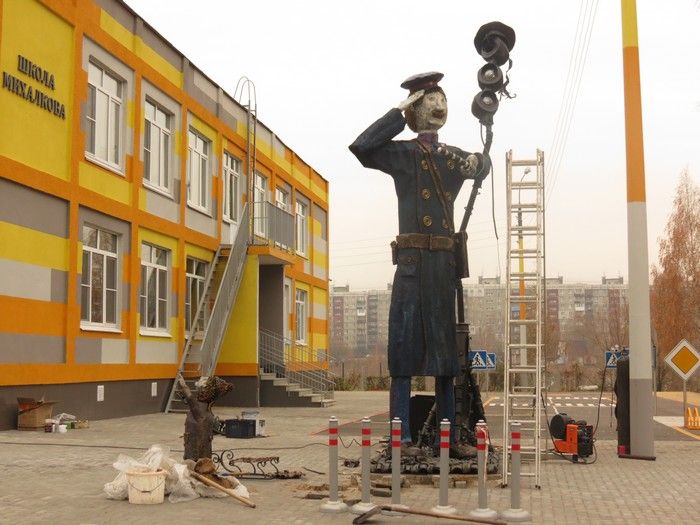 31 октября на территории школы имени Сергея Михалкова в Нижнем Новгороде закончили основные работы по установке скульптуры дяди Степы. После того как автор памятника Сергей Мельников доделает композицию, состоится ее официальное открытие.