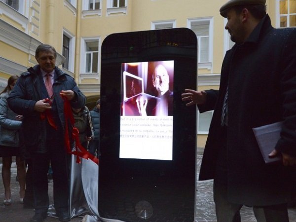 Памятник Стиву Джобсу был открыт в Санкт-Петербурге 9 января 2013 года. Он представлял собой iPhone высотой 188 см, что эквивалентно росту основателя компании Apple. При этом желающие могли получить доступ к интерактивному контенту памятника, который включает в себя цитаты, биографические сведения и медиа-материалы о Стиве Джобсе. Кроме того, модель iPhone бесплатно раздавала сеть Wi-Fi.