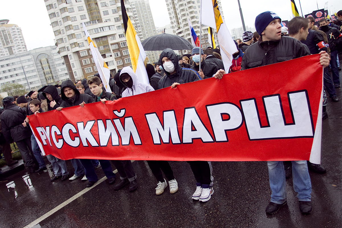 4 ноября, в День народного единства, на улицах Москвы прошли три массовые демонстрации. Две из них носили название "Русский марш" и собрали националистов. Еще одна – марш в поддержку президента Путина под названием "Мы едины". Последнюю, по официальным сообщениям, организовали прокремлевский Общероссийский народный фронт, национальные диаспоры, спортсмены, политики, но сообщения об этом не “русском” марше размещены на официальном сайте “Русского марша” и на его странице в "Фейсбуке". "Путингу", как назвали в интернете шествие под названием "Мы едины", прочертили маршрут в центре Москвы, по улице Тверской. "Русские марши", по традиции, установившейся после столкновений с милицией в 2008 году, отправили на окраины – в Люблино и Щукино.