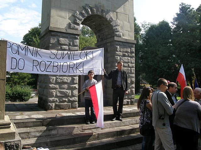 Заместитель мэра города Ежи Гвизд указал, что эта деятельность "не ударяет по российско-польским отношениям". "Мы с уважением относимся к похороненным здесь солдатам и праву. Удаление советской символики с памятника у военного захоронения соответствует закону", - сказал Гвизд.