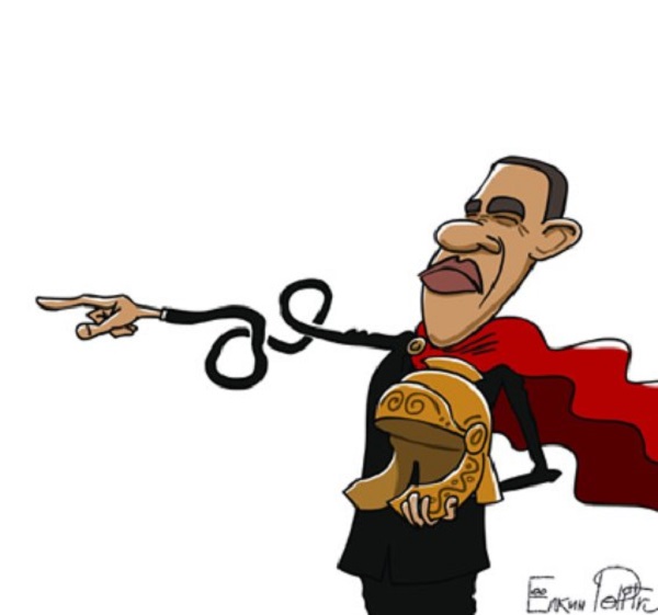 Барак Обама на заседании СБ ООН Комментарий редактора: В конце марта Барак Обама назвал Россию «региональной державой», угрожающей некоторым из своих соседей «скорее из слабости, нежели ввиду своей силы. Позже, в середине сентября, выступая на открытии 69-й Генассамблеи ООН, президент США назвал угрозу, исходящую от России, второй по значимости после лихорадки Эбола, но менее опасной, чем от «Исламского государства» на Ближнем Востоке. Позже премьер-министр РФ Дмитрий Медведев на это заметил, что у президента США, возможно, «какая-то аберрация в мозгах», что, по мнению премьера, «печально».