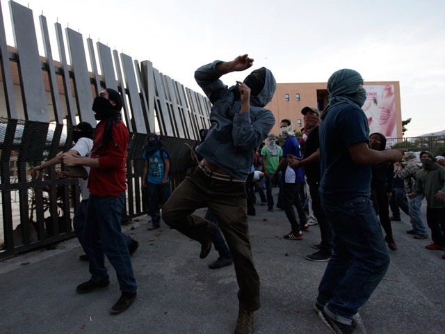 По данным CNN Mexico, очередная акция протеста студентов началась в 5 часов вечера как мирный флешмоб, но затем неизвестные с закрытыми лицами, в том числе в масках Anonymous, начали атаковать ворота Национального дворца. Одна из студенток, участвующая в протесте, заявила AFP, что эти люди дискредитируют движение.