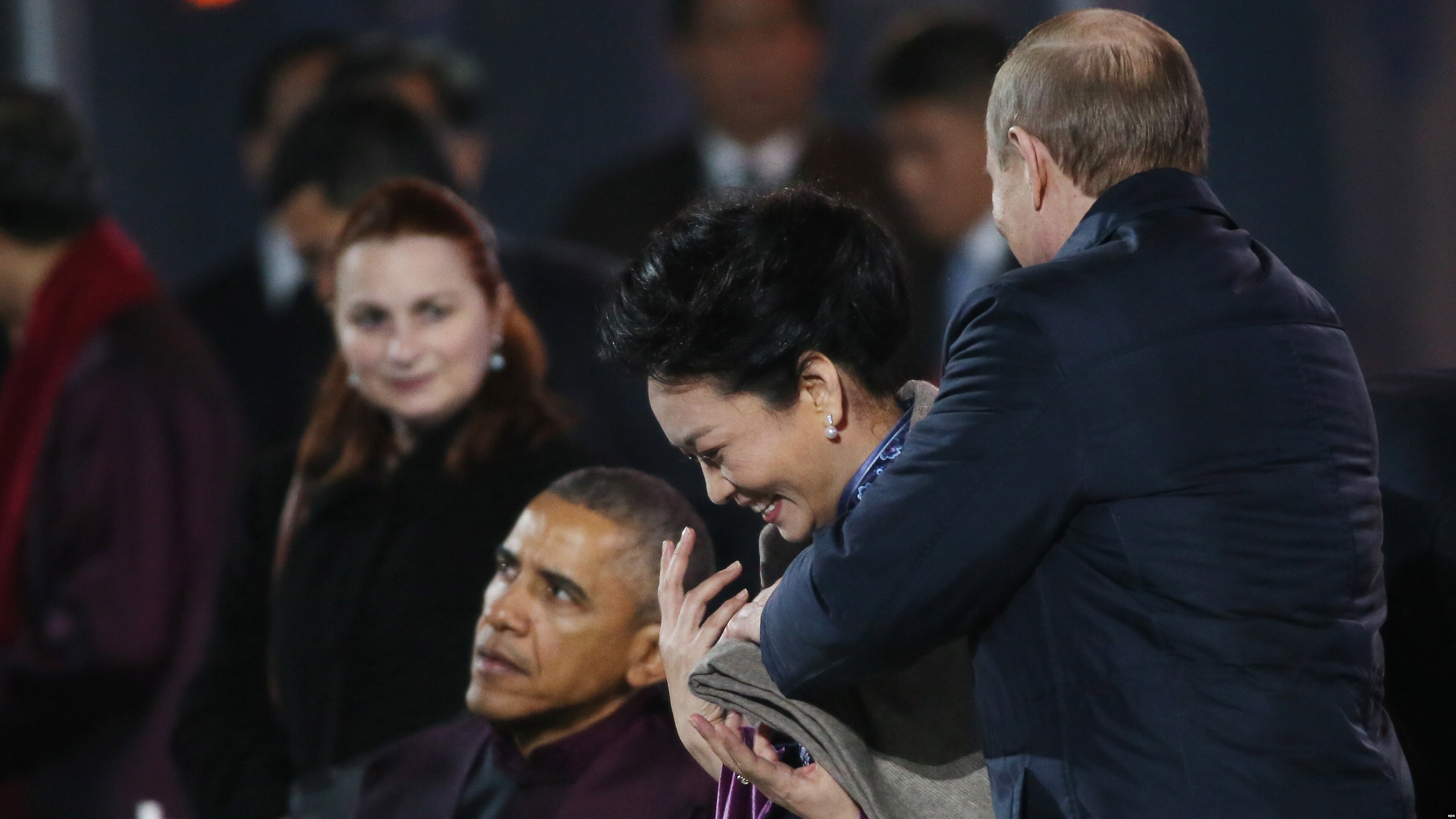 Вечером 10 ноября, пока лидеры стран Азиатско-Тихоокеанского экономического сотрудничества (АТЭС) ждали выступления артистов, Путин, как подчеркивают западные СМИ, разведенный мужчина, проявил неожиданную галантность по отношению к супруге Си Цзиньпина – Пэн Лиюань. Она – певица, солистка ансамбля Национальной освободительной армии Китая. Пэн Лиюань состоит на службе в НОАК и в настоящее время имеет чин генерал-майора.