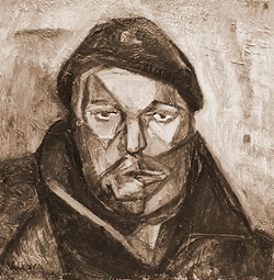 Это тот редкий случай, когда вдохновлять могут даже лапки крысы, не говоря уже о более таинственных вещах вроде мифов и преданий белорусов. Одна из самых заметных картин на выставке называется «Житень» (мужчина зрелого возраста с тремя глазами, он же - бог осени белорусского происхождения).