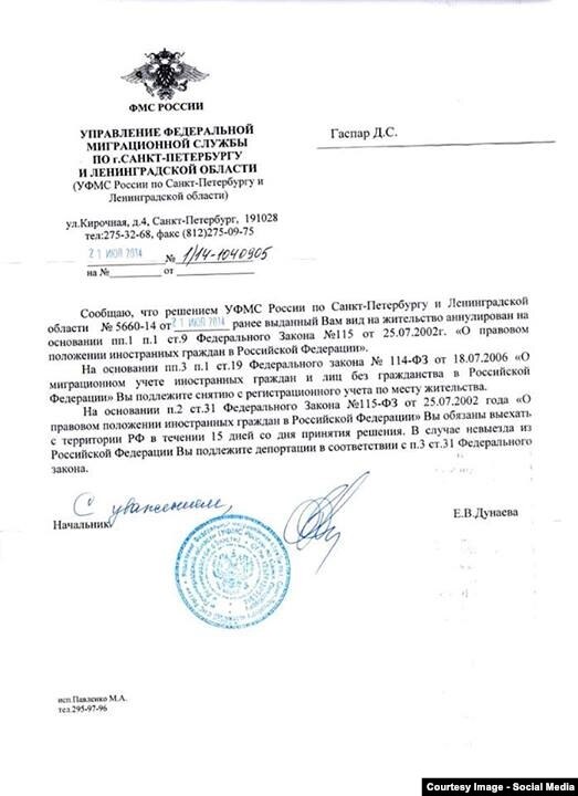 Горсуд Петербурга подтвердил лишение вида на жительства Гаспар
