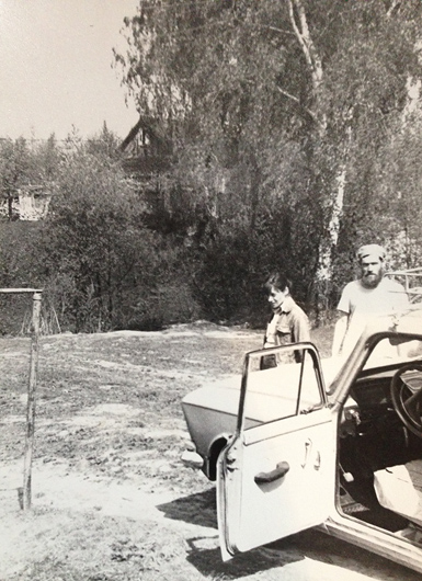 © Из архива Веры Лашковой У дома Гинзбургов, Таруса, середина 1970-х. На первом плане «Москвич» А. И. Солженицына, оставленный Фонду помощи политзаключенным