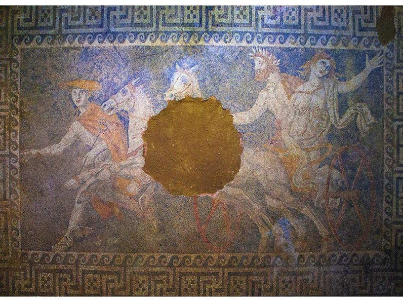 Под полом третьей камеры, в которой ранее была обнаружена великолепная мозаичная картина с Аидом, Гермесом и Персефоной, археологи нашли каменный саркофаг со скелетом. Еще там были обнаружены гвозди, скреплявшие когда-то доски деревянного гроба, а также фрагменты украшений из кости и стекла.