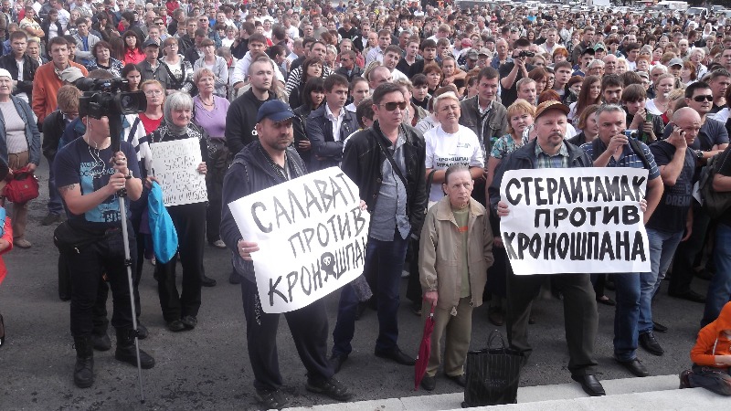 Жители Уфы выходят на протестные акции непрерывно с лета 2013 года. Около стройплощадки активисты разбили лагерь и блокировали строительство. На пике протеста в митингах участвовали несколько тысяч человек. Член координационного совета общественного экологического движения "СтопКроношпан" Евгений Давыдов говорит, что все надежды активистов были возложены на президентскую комиссию из Москвы, которая зафиксировала нарушения, а таковые были даже при согласовании участка земли под строительство.