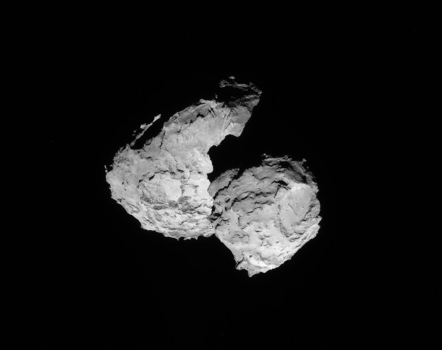 Уже в первом приближении комета оказалась крайне странным объектом. Ее форма, напоминающая резинового игрушечного утенка, донельзя напоминала форму кометы Галлея, сфотографированную советскими станциями ВеГа в 80-е годы ХХ века. Комета оказалась на удивление темной, без видимых пространств льда, при этом ее поверхность достаточно пересеченная, усыпанная валунами, но без кристаллов замерзших газов и тому подобных красивостей. Нужно было выбрать максимально ровное место, чтобы посадочный модуль «Филы» мог сесть правильно и использовать весь свой научный арсенал.